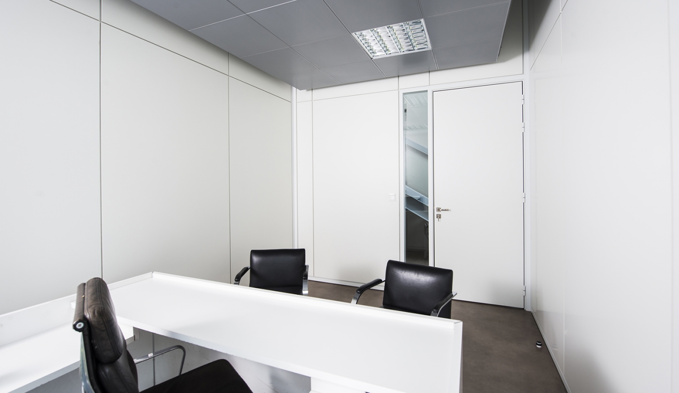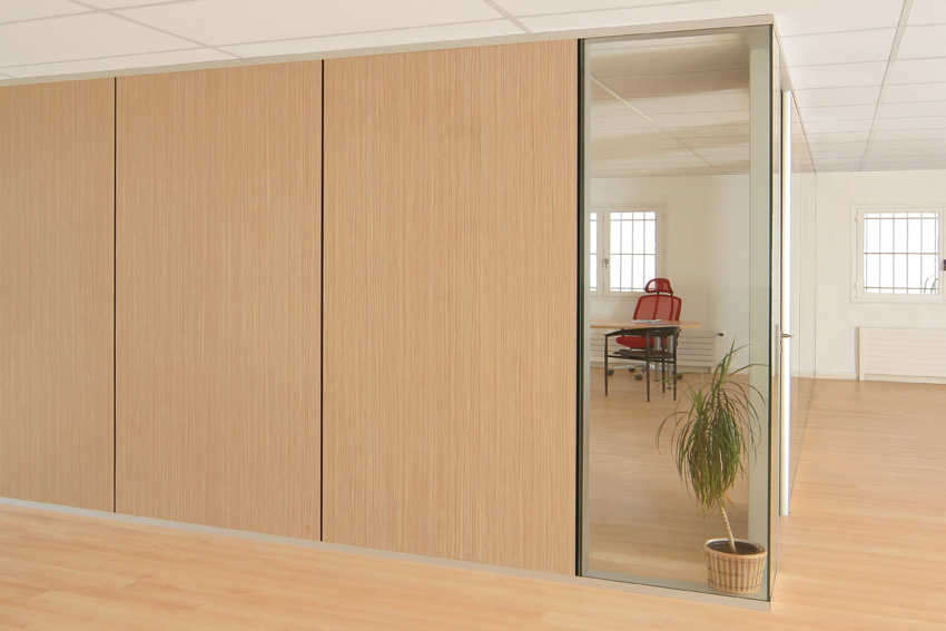 La cloison pleine permet une parfaite confidentialité et un total isolement. Elle est essentiellement constituée de panneaux revêtus avec des couvre-joints aluminium.